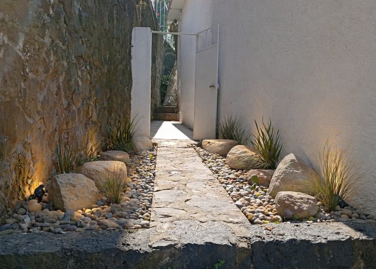 Trabajamos con conceptos minimalistas, contemporáneos y naturales, utilizando elementos como piedra decorativa, madera, iluminación y vegetación cuidadosamente seleccionada.